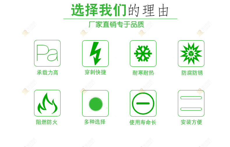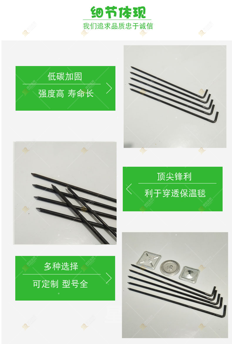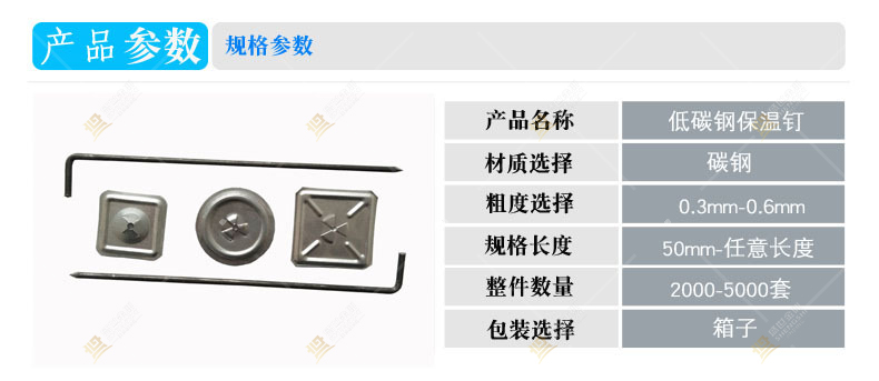 并且由機械生產的保溫鉤釘,規格尺寸保持了一致性,保證了施工時的方便與美觀。